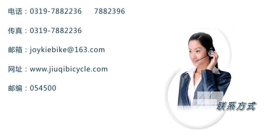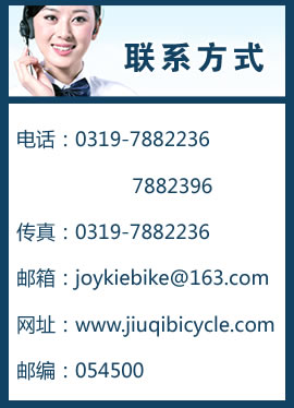 地 址:河北省平乡县河古庙工业区 电 话:0319-7882236 7882396 传真:0319-7882236 版权所有:邢台市久骐车业有限公司